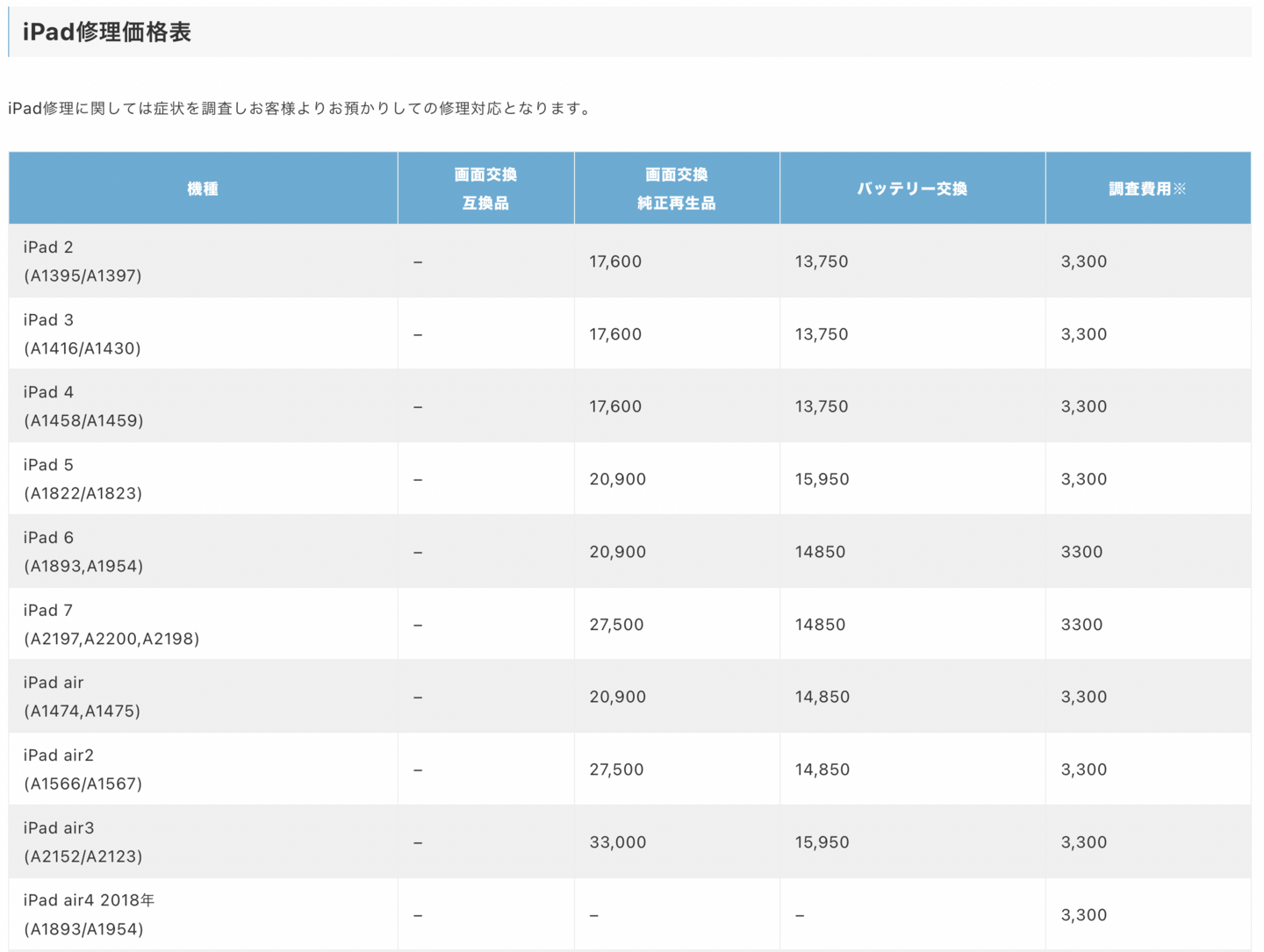 iPadの修理に関しては納期1週間ほど頂いております。